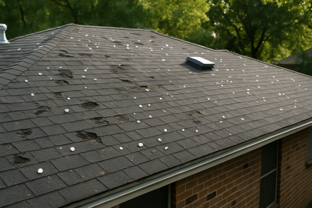 Hail damage claims in Newton typically follow the spring storm season (March through June) and fall storm season (September through November). Hail damage creates circular impact points on shingles with a characteristic bruised appearance and exposed substrate. It is often invisible from ground level and requires a roof inspection to document properly.